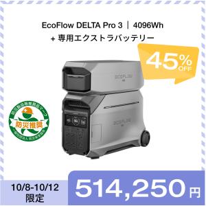 ポータブル電源 大容量 リン酸鉄リチウム セット DELTA Pro 3 4096Wh + 専用エクストラバッテリー 家庭用 車中泊 キャンプ 防災 停電 EcoFlow