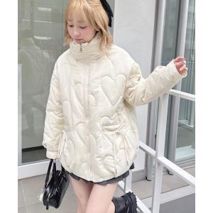 ダウンコート ダウンジャケット ハートキルティングリボンオーバージャケット レディース