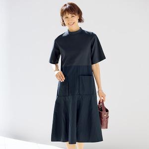 ワンピース きれいめ おしゃれ 春夏 ミセス シニア ファッション 40代 50代 60代 70代 異素材切替え ポケットデザインワンピース