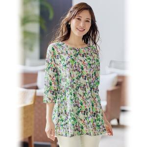 チュニック 40代 50代 60代 70代 ミセス シニア ファッション 大人 おしゃれ レディース 春夏 服 ぼかしプリントジャージーチュニック