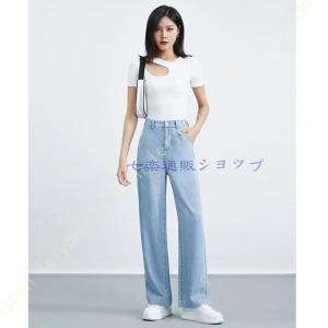 ストレートパンツ デニムパンツ レディース ハイウェスト ジーンズ ゆったり ロングパンツ 韓国ファッション パンツ デニム ズボン 夏 デニム ロング パンツ