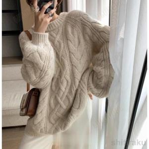 レディース 韓国ファッション トップス ニット セーター カットソー ロングスリーブ タートルネック 普段着 オフコーデ ホワイト XS S M/L