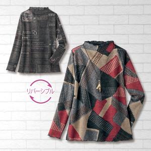 トップス プルオーバー レディース おしゃれ 春 秋冬 ミセス シニア ファッション 40代 50代 60代 70代 80代 リバーシブルプリントプルオーバー