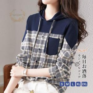 パーカー レディース 長袖 チェック カジュアル おすすめ フード付き アウトドア 韓国風 売れ筋 通販 スウェット 体型カバー 通勤