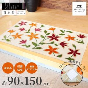玄関マット おしゃれ 大判 屋内 風水 パシオーネ 約90×150cm コーナー吸着つき 吸着シート 洗える 室内 日本製 ウィルトン織り おしゃれ 花柄 赤 オレンジ オカ