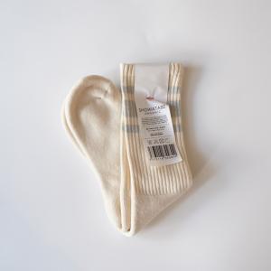 SHOWATABE | 80's Skater Socks Organic (ecru x blue / orange / purple / gray) | ソックス デカ シンプル