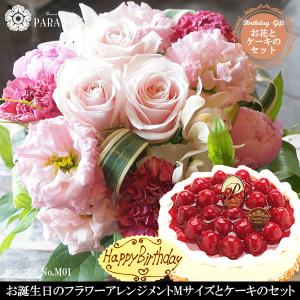 お誕生日のフラワーアレンジメントMサイズ ( No.M01 )と洋菓子店カサミンゴーの最高級ケーキとのギフトセット 花とスイーツセット ケーキと花のギフトセット
