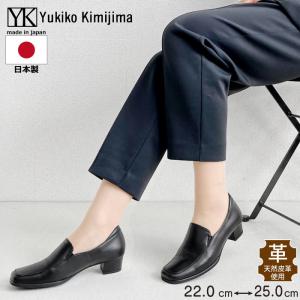Yukiko Kimijima ユキコ キミジマ ローファー パンプス ブラック 本革 レディース スクエアトゥ ヒールローファー レザー 日本製 送料無料 142-9800