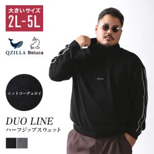 大きいサイズ スウェットトップス メンズ QZILLA DUO LINE ラバーワッペン ハーフジップ 2L 3L 4L 5L カジュアル 春 秋 冬 2025AW