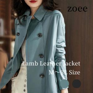 ラムレザー ジャケット コート レディース ショート 本革 羊革 秋/冬 アウター ブラック/ブルー M/L/2L/3L l1b45