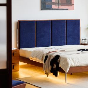 CAGUUU フラットエッジベッド L180*W207*H83.5cm キング 北欧風無垢材ベッドフレーム 和モダン木製ベッド ミニマルデザインベッド