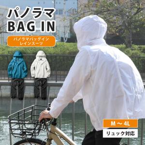 新生活 レインコート レインウェア 上下 ヘルメット対応 自転車 リュック 合羽 男女兼用 4L EL 耐水圧10000mm Makku AS-5140 パノラマバッグイン レインスーツ