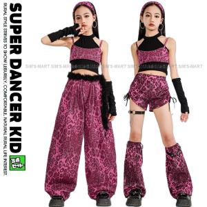 キッズダンス衣装 セットアップ ガールズ ヒップホップ 衣装 派手 ピンク ヒョウ柄 レオパード ダンス衣装 キッズ 子供ダンス服 ダンスウェア K-POP 韓国
