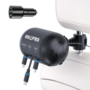 【並行輸入品】車用格納式充電コードボックス 3イン1 携帯電話 高速充電ステーション USB Type C マルチコードコネクター iPhone