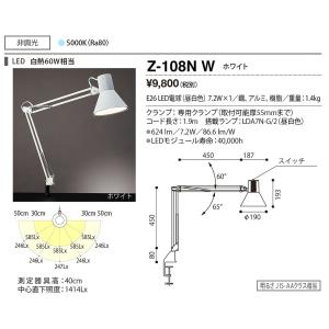 山田照明(YAMADA) Z-108NW Z-Light デスクライト 非調光 LED電球 昼白色 クランプタイプ ホワイト [♪]