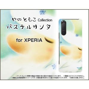 XPERIA 5 II エクスペリア TPU ソフト ケース/カバー ガラスフィルム付 パステルサンタ やのともこ デザイン サンタクロース 雪の結晶 メルヘン