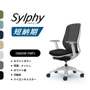 【短納期対応】オカムラ シルフィー C685XW メッシュタイプ ハイバック 可動肘 ホワイトボディ ホワイト脚 前傾機能付 ナイロンキャスター オフィスチェア