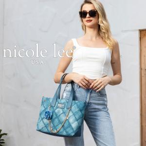 数量限定 NICOLE LEE ニコールリー P17093 ブルーフラワートート 2WAY ショルダートートバッグ レディース デニム キルティングパッチワーク