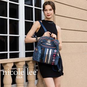 数量限定 NICOLE LEE ニコールリー JS17046 パッチフラワーバックパック ハンドバッグ レディース デニム スパンコール パッチワーク 刺繍ショルダー
