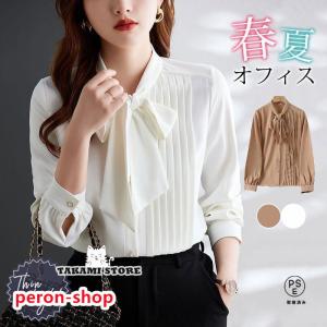 ブラウス 長袖 春 レディース オフィス シャツ ボリューム袖 リボン 入学式 仕事 トップス 通勤 スーツ インナー シフォン 卒業式 ビジネス