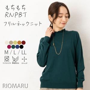 ニット レディース トップス 秋 冬 春(メール便 送料無料12)(M〜LL)12GRN 天竺 PBT 混 もちもち 静電気 防止 襟元 フリル ネック 長袖 ニット(エコ包装)(kt)(at)