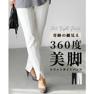 パンツ レギパン スリット タイトパンツ 裏起毛 ストレッチ センターライン 美脚 美シルエット 暖かい シンプル 無地 細見え ボトム ボトムス