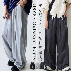 裏毛 ワイドパンツ レディース ロング アウトシーム 送料無料・メール便不可