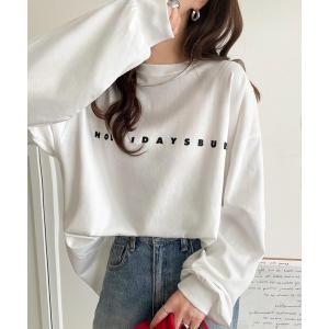 tシャツ 大人の上品カジュアルを楽しむ。ゆったりシルエット 綿100%シルケット風シンプル英字ロゴTシャツ(長袖) レディース