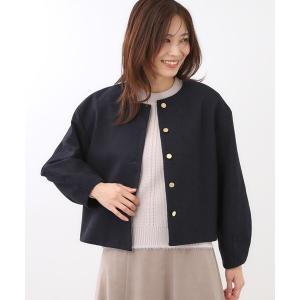 ジャケット ノーカラージャケット 「着映え/アームホールゆったり」グレンチェックジャコット レディース