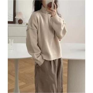 ニット セーター ゆったりハーフジップタートルネックの厚手セーター レディース