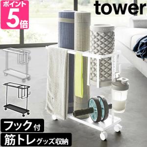 山崎実業 キャスター付きフィットネスグッズ収納ラック タワー 1989 1990 棚 ワゴン シェルフ ヨガマットケース 組み立て スリム 押入れ収納