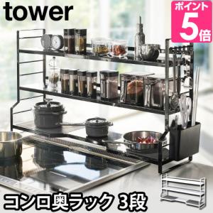 山崎実業 コンロ奥ラック キッチンラック 調味料ラック 隙間ラック 砂糖 棚 おしゃれ ihコンロ 奥 tower タワー コンロ奥ラック 3段 3593 3594