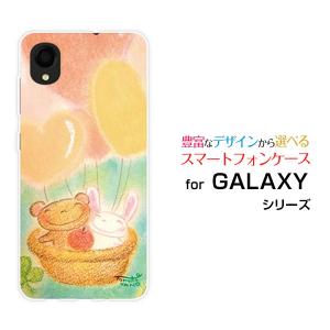 GALAXY A22 5G SC-56B ギャラクシー スマホ ケース/カバー ガラスフィルム付 うさぎとクマの旅 やのともこ デザイン うさぎ くま りんご ハート 風船 三つ葉