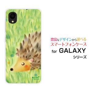 GALAXY A22 5G SC-56B スマホ ケース/カバー ガラスフィルム付 草原のハリネズミ やのともこ デザイン ハリネズミ 草原 ほっこり パステル メルヘン