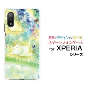 XPERIA Ace II SO-41B TPU ソフト ケース/カバー ガラスフィルム付 ねこ(コロンちゃん) F:chocalo デザイン ネコ 魚 イラスト 癒し ふわふわ