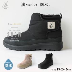 スノーブーツ 防水YUK レディース ジュニア 防水YUK 23 23.5 24 24.5 滑りにくい ウィンターブーツ 冬靴 防水 防滑 黒 ベージュ 無地 雪道対応 北海道 秋