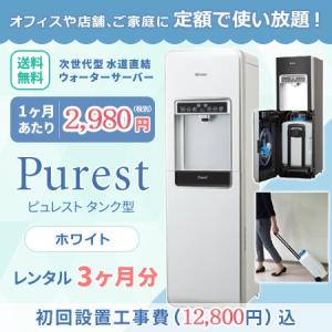 浄水型ウォーターサーバー 本体 レンタル 定額制 お試し 3ヶ月分 ピュレスト タンク型 ホワイト 設置工事費 送料込