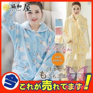 ルームウェア パジャマ 上下セット レディース 冬 ふわふわ モコモコ 前開き ふわもこパジャマ 暖かい 秋冬対応 もこもこ 可愛い 丸襟 ウサギ