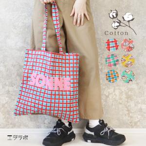 トートバッグ フラワー チェック ロゴ ブロックプリント エスニック インド製 タオル刺繍 大容量 肩掛けトート 花柄 エコバック gri *2 *y3-2t