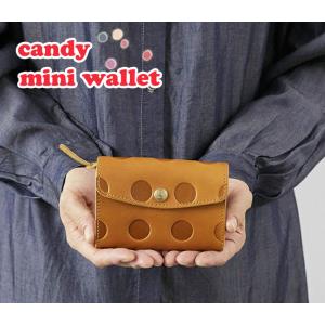 Kanmi. カンミ キャンディ ミニウォレット 二つ折り財布 レディース 女性 かわいい 革製 レザー 日本製 プチプラ ミニ財布 水玉 ドット