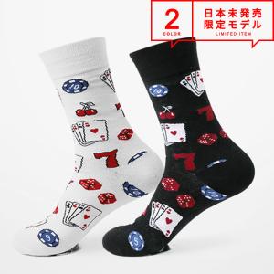 即納 casino カジノ ソックス メンズ 靴下 クルーソックス ミドルソックス ブラック/ホワイト ダイス トランプ スロット ギャンブル ストリートファッション
