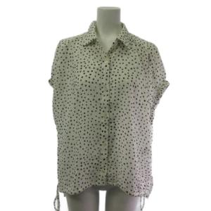 グレディブリリアン Gready Brilliant シャツ ブラウス フレンチスリーブ ドット シアサッカー 白 ホワイト 38 レディース