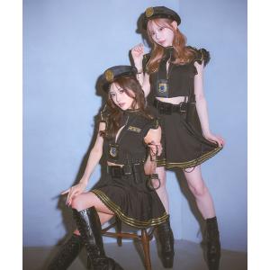 コスプレ コスプレ 警官 セクシー ポリス 体型カバー へそ出し バストジップ フレアスカート ツイン 7点セット