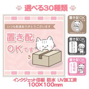 置き配マグネット 置き配可 置き配OK 猫イラスト ネコ シール 100×100mm ST-0028M