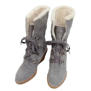 コールハーン COLE HAAN NIKE AIR レースアップ ショート ブーツ ウェッジソール スウェード ムートン 6.5 グレー レディース