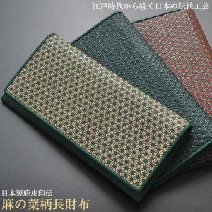 サイフ 小銭入れ付 長財布 印伝 麻の葉柄 日本製 鹿革 IDA-101