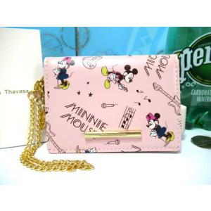 送料無料 サマンサタバサ 限定 ミッキー ミニー 本牛革 二つ折り パスケース 定期入れ カード入れ チェーン付 ピンク 新品 タグ付 ギフト包装無料 ディズニー