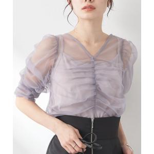 tシャツ SET2点シアーギャザープルオーバー×インナーキャミ レディース