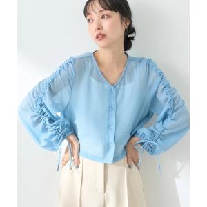 ブラウス シャツ キラキラシアーギャザーシャツ レディース