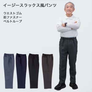 【シニア メンズ】らくらくスラックス風 イージーパンツ 総ゴム 前ファスナー付き 高齢者用 静電気防止 介護 お出かけ用 ズボン 70代 80代 快適パンツ
